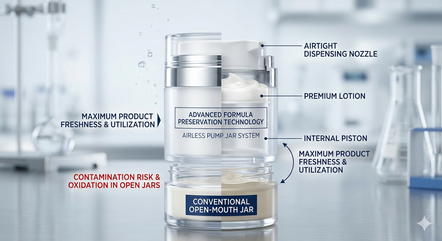 業界の変化の主な理由は、 エアレスポンプジャー 空気への曝露を排除することで、防腐剤を含まないナチュラルなスキンケア製品の保存期間を大幅に延長します。消費者が合成安定剤を減らした「クリーンな美しさ」を求める中、パッケージは保護の役割を引き継ぐ必要があります。従来の瓶では、蓋を開けるたびに酸素が入り込み、ビタミン C、レチノール、さまざまな植物油などの有効成分が急速に劣化してしまいます。